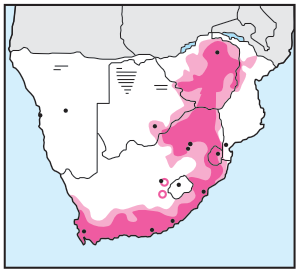 Occurs in pairs and frequently in bird parties in heavily wooded kloofs, streams, hillsides and 'forest's.