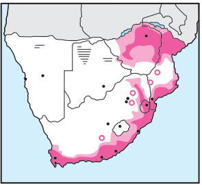 Occurs singly, in pairs or in small 'flocks' in various bushy habitats including hillsides, kloofs, 'forest' fringes, bracken-briar patches and riverside thickets.
