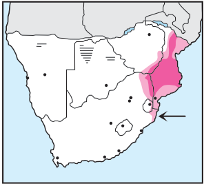 Small 'flocks' occur in 'broad-leaved woodland', mixed bushveld and thornveld, feeding in large trees.