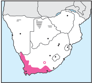 A lively, conspicuous species frequenting scrub, wooded watercourses and exotic coastal bush in the western and southern Cape.