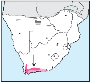 Pairs and small parties occur on rocky mountain slopes within the 'fynbos' biome.