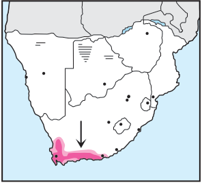 Pairs and small parties occur on 'fynbos'-covered mountain slopes, or in valleys and 'forest' clearings.