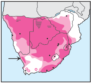 Pairs or 'flocks' occur in thornveld, mixed woodland and suburbia.
