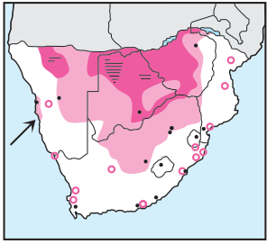 Fairly common summer visitor. A large, long-legged, thin-billed plover with a conspicuous white eyebrow. Breeding male often seen Feb–Mar. Female in breeding plumage may have incomplete rufous breast-band, the dark lower edge always absent. Immature resembles non-breeding adult, but the breast-band may be confined to a patch on either side. The call is a shrill ‘ku-wit’, loudest at night, softer and more piping by day. Flocks on plains with short grass and burned areas, often in the semi-arid region of north-central Botswana and northern Namibia. Habitually runs rather than flies.