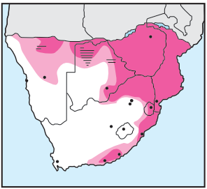 Occurs in woodland, bushveld, riparian 'forest's and coastal bush.