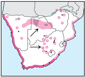 Groups, up to about 50 or 60, occur on coastal shorelines (especially southern and western coasts), estuaries, coastal lagoons, tidal rivers and harbours.