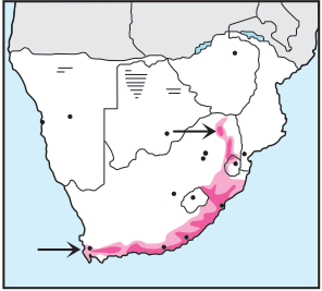 Normal call is a thin, plaintive ‘tweetoo, twee-ee' given frequently, often the first clue to its presence (similar to co-occurring Swee Waxbill). Pairs and small parties frequent tree canopies in 'forest's at all altitudes, as well as adjacent 'forest'ed kloofs and plantation fringes.