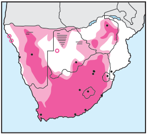 Occurs in pairs when breeding; otherwise small 'flocks' are found over open terrain, montane 'grassland', near culverts, rocky koppies and human habitation.