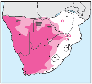 The 'flocks', often very large, occur in a wide variety of semi-arid to arid 'grassland', gravel plains with scattered bushes or trees and dry pans.