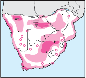 Occur in flocks of many thousands or singly. The two species described below may be found together. They prefer shallow saline pans, dams and estuaries, as well as sheltered coastal bays, but are nomadic and remain in one place only for as long as conditions are suitable. Over most of the region they are infrequently seen. Both species have a honking call which, in flocks, sounds like babbling. Immatures are grey-brown with a bill pattern similar to that of adults. They feed on algae or aquatic invertebrates which are filtered from the water with specialised bills, the feeding birds walking in a characteristic posture with the head held upside down.