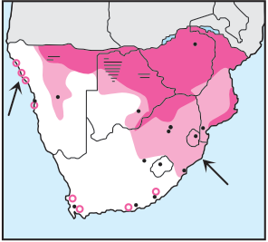 Occurs singly or in pairs on shallow ponds with surface and fringing vegetation, vleis and flooded 'grassland'.