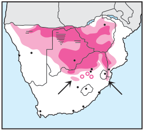 Small groups of three to 10 birds occur in thornveld and mixed bushveld, preferring lightly wooded, well-grassed regions where they hunt from a perch on a bush.