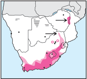 Call is a shrill 'kee-kee-kee..' Occurs singly in stands of exotic trees and 'forest' patches in montane 'grassland' or 'fynbos'.