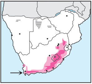 Pairs frequent rocky uplands and montane 'grassland's in summer; in winter they move to lower levels and then favour Karoo vegetation, 'fynbos' and 'grassland'.
