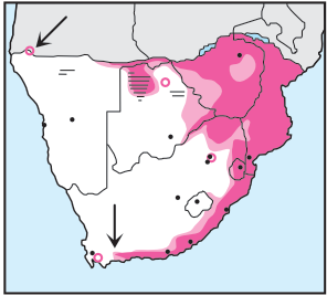 Frequents dense riverside and hillside thickets, and dense undergrowth in 'forest' and bushveld, scratching noisily about in debris and seldom ascending above the lower stratum.