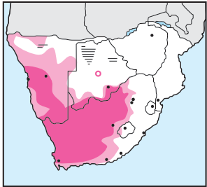 Occurs in 'flocks' in thornveld, riverine bush and suburbia in the drier regions.