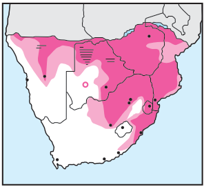Pairs or loose parties found on 'fynbos'-covered hillsides.