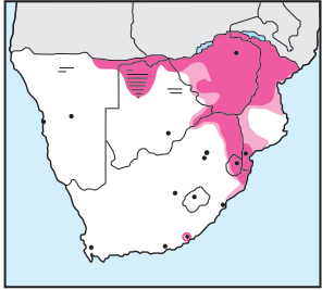 Inhabits dense thickets in riverine 'forest's and at the base of densely wooded hills and termitaria.
