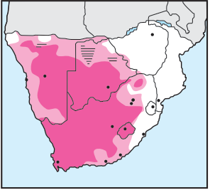 Small parties and 'flocks' occur in semi-arid regions, frequenting low-growing bushes of mountain sides, and 'Karoo' and coastal scrub, especially along watercourses; they also enter small towns.